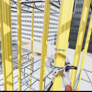 Mit VRAPP at Height ist es möglich, die Anwendung von Fallschutz in Form von Pfosten und eines horizontalen Anschlagseils bei Deckenarbeiten zu üben.