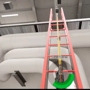 Mit VRAPP at Height ist es möglich, die Einrichtung horizontaler Spannseile mit Auffanggerät als Absturzsicherung bei der Arbeit an einer Kante zu üben.