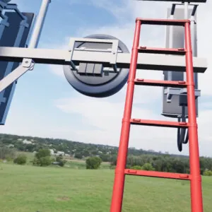 Escalade sur une échelle fixe équipée d’un guide-câble en acier