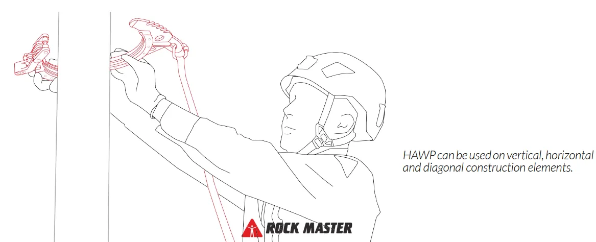 Elastomer inserts enhance fitment and protect from slippage. Because of its self-tightening abilities it can be used when moving vertically and diagonally. It can be also used in a same way as a conventional connector (for climbing ladders etc.)