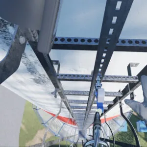 VRAPP at Height umożliwia przeprowadzenie ćwiczenia polegającego na zastosowaniu haków asekuracyjnych na różnego typu ścianach szalunkowych.
