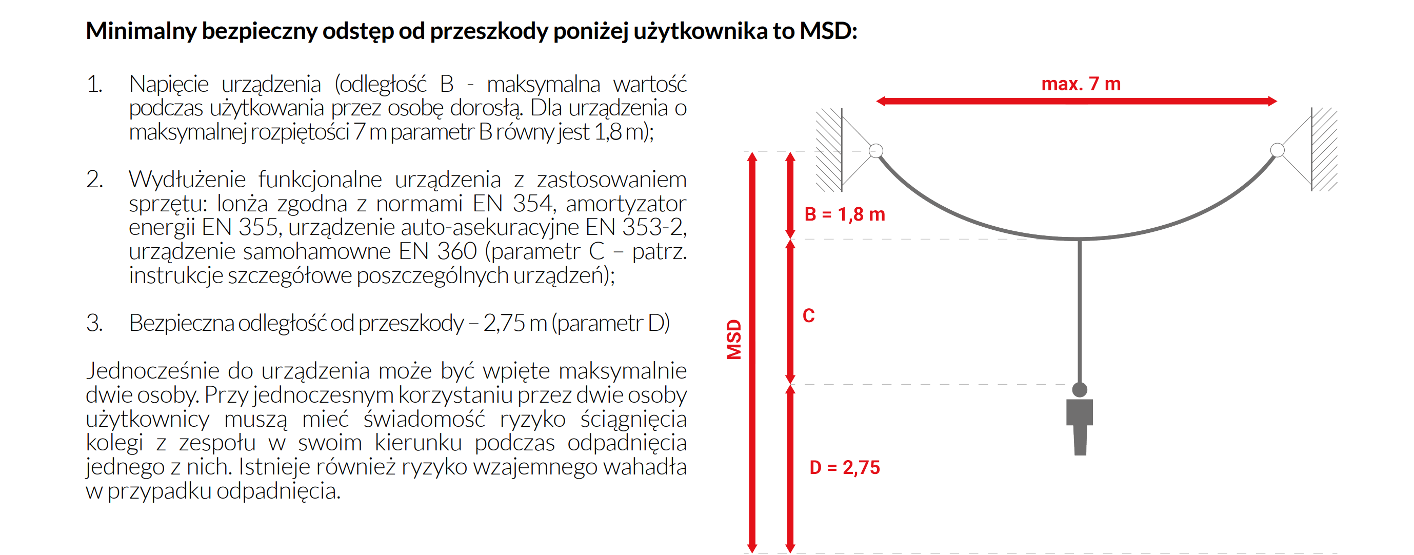 Układ ten można kotwić do elementów konstrukcji za pomocą urządzeń kotwiczących zgodnych z EN 795A o minimalnej wytrzymałości 30kN. Zaleca się stosowanie dynamicznych słupków kotwiczących typu DSA.