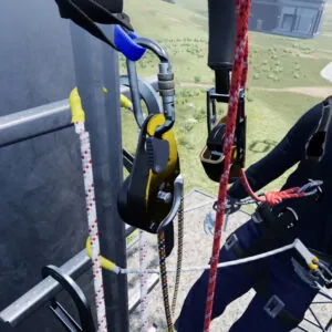 VRAPP at Height umożliwia przeprowadzenie ćwiczenia uczącego prawidłowego budowania stanowisk i punktów kotwiczących.